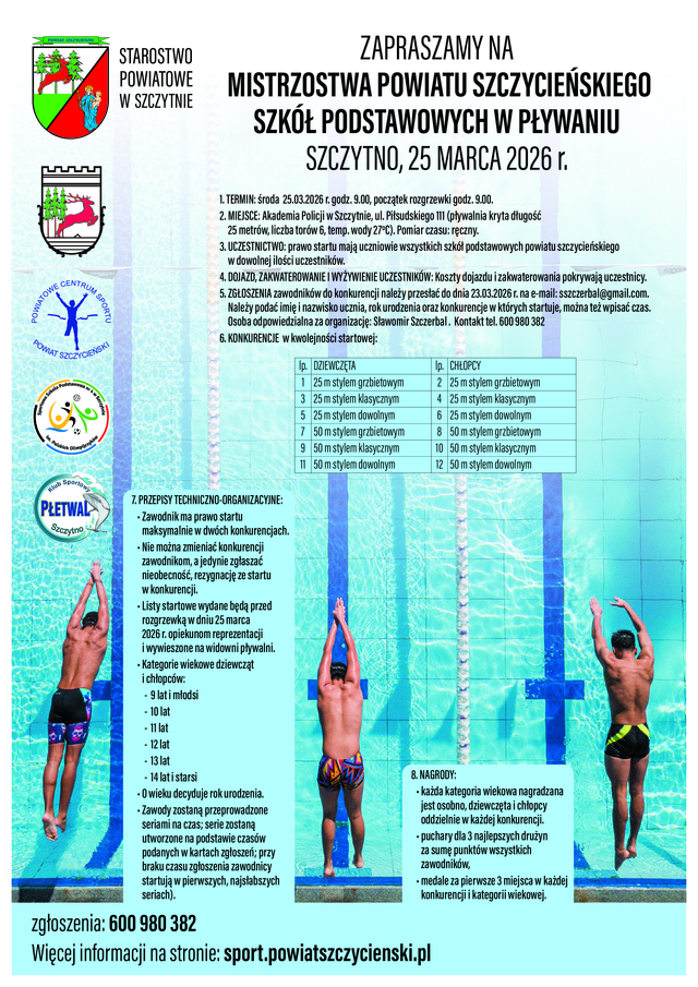 5. ZGŁOSZENIA zawodników do konkurencji należy przesłać do dnia 23.03.2026 r. na e-mail: sszczerbal@gmail.com.